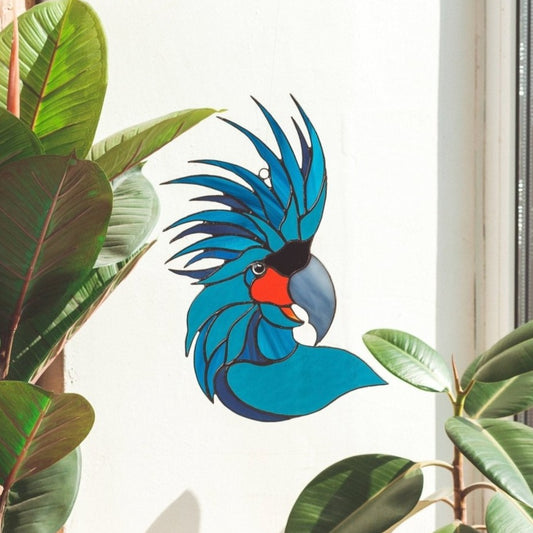 Black Cockatoo parrot Stained Glass - Hangings Suncatcher 9x5.1 inch
