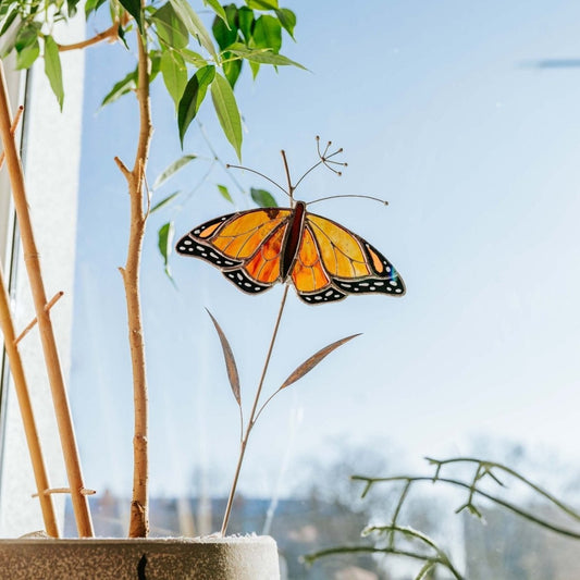 Monarch Butterfly Stained glass - Suncatcher Garden Stake Decor 13.5x4.5 inch