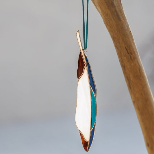 Magpie Feather Stained Glass - Suncatcher Hanging Decor 6.5x1.5 inch