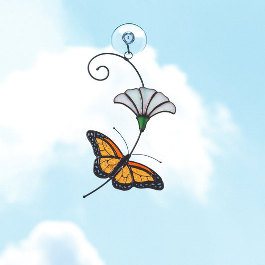 Monarch Butterfly Stained Glass Suncatcher – Window Hanging Decor