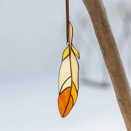 Mockingbird feather Stained Glass - Suncatcher Hanging Decor 6.5x1.6