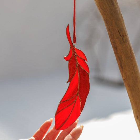 Red Cardinal feather Stained glass - Suncatcher Hangings Decor 6.7x1.6 inch