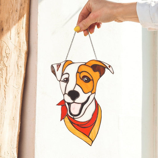 Jack Russell Stained glass - Suncatcher Haning Decor 8.2x5.9 inch