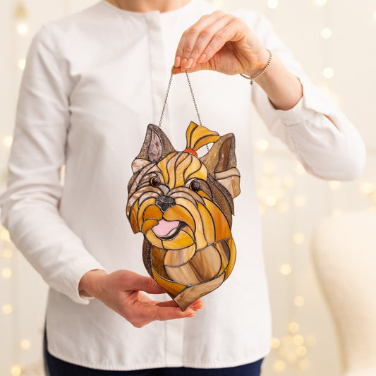 Dog portrait Stained Glass - Memorial Gift Suncatcher