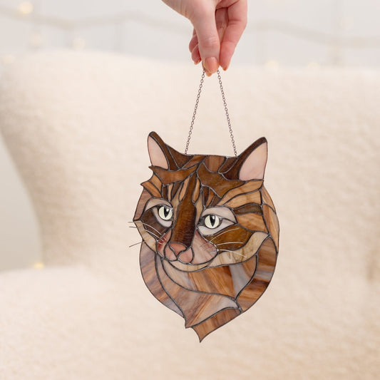 Custom Stained Glass Cat Portrait – Personalized Gift for Cat Lovers from Your Photo