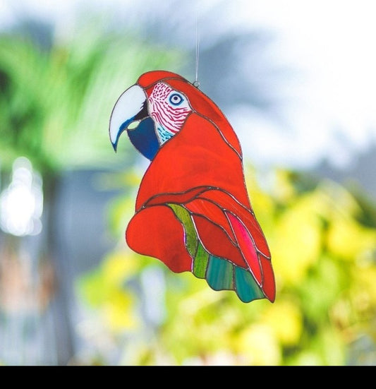 Red Macaw parrot Stained Glass - Window Hangings Suncatcher 9x5.1 inch