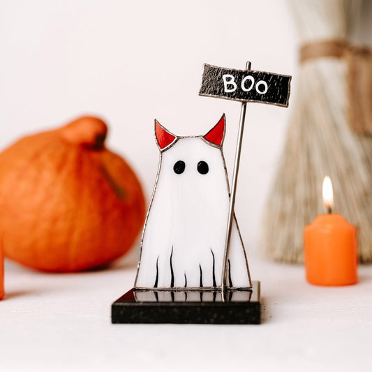 Ghost Cat Stained glass - Suncatcher Table Decor 5.7x3 inch