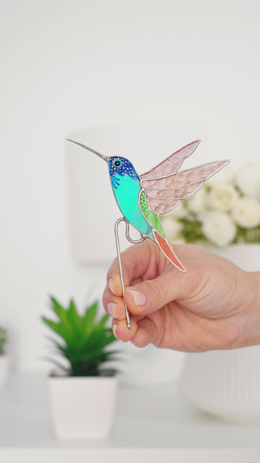 Green Hummingbird Stained Glass – Planter Decoration Funny & Cute Bird Gift | Tropical Decor