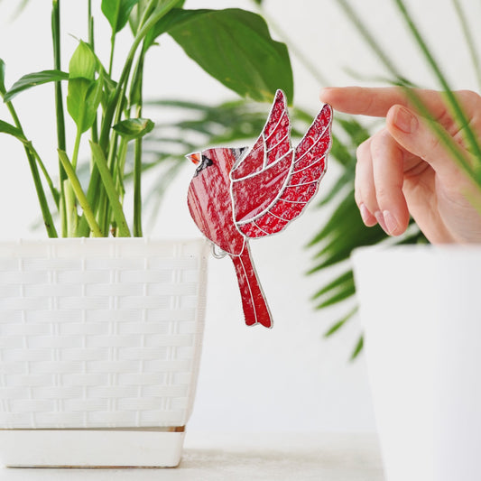 Red Cardinal Stained glass - Suncatcher Planter Decor 3.15x4.7 inch