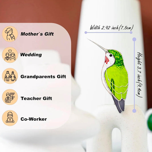 Green Hummingbird Stained Glass - Suncatcher Planter Decor 4.7x3.15 inch