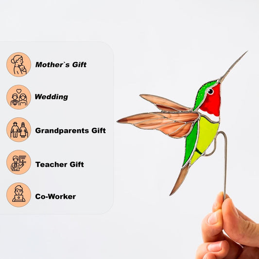 Hummingbird Stained Glass - Suncatcher Planter Decor 3.15x4.7 inch