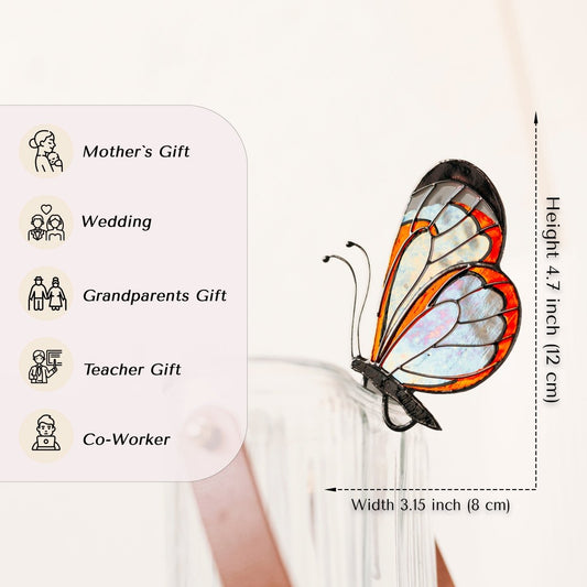Monarch Butterfly Stained Glass - Suncatcher Planter Decor 3.3x2.3 inch