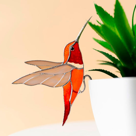 Orange Hummingbird Stained Glass - Suncatcher Planter Decor4.7x3.15 inch