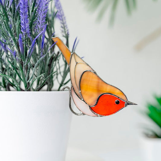 Robin Stained Glass - Suncatcher Plant Decor 4.7x3.15 inch
