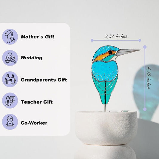Stained Glass Kingfisher Bird Pot Decor – Bright Garden Accent Gift for Aunt