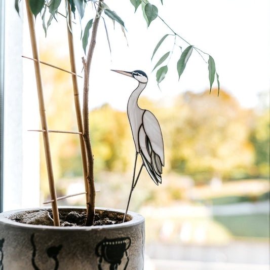 Vidrieras Grey Heron pájaro suncatcher - Regalo para los abuelos