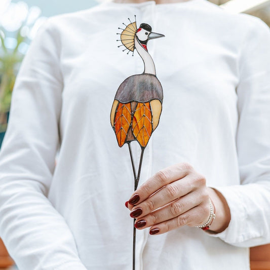 Vidriera gris coronada grulla suncatcher - Flora Support Decor