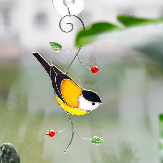 Chickadee Window Hanging – Stained Glass Bird Gift A Cheerful Symbol of Joy