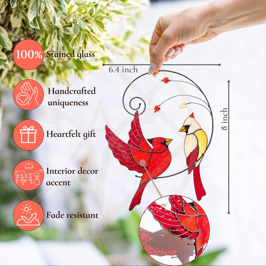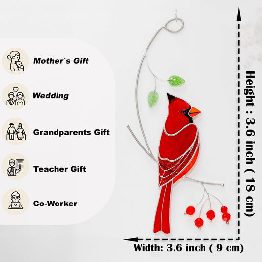 Stained Glass Red Cardinal - Suncatcher Hanging Decor 7.5x4.4 inch