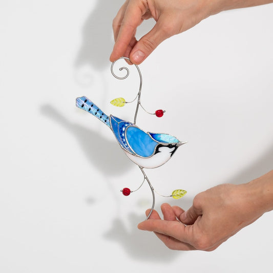 Stained Glass Blue Jay - Suncatcher Hanging Decor 7.5x3.9 inch