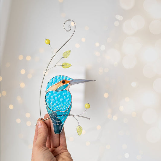 Stained Glass Kingfisher - Suncatcher Hanging Decor 8.3x4.33 inch