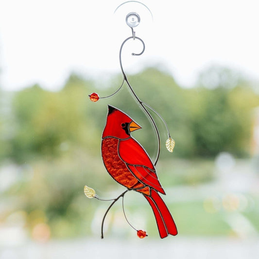 Red Cardinal Window Hanging – Stained Glass Father’s Day Gift