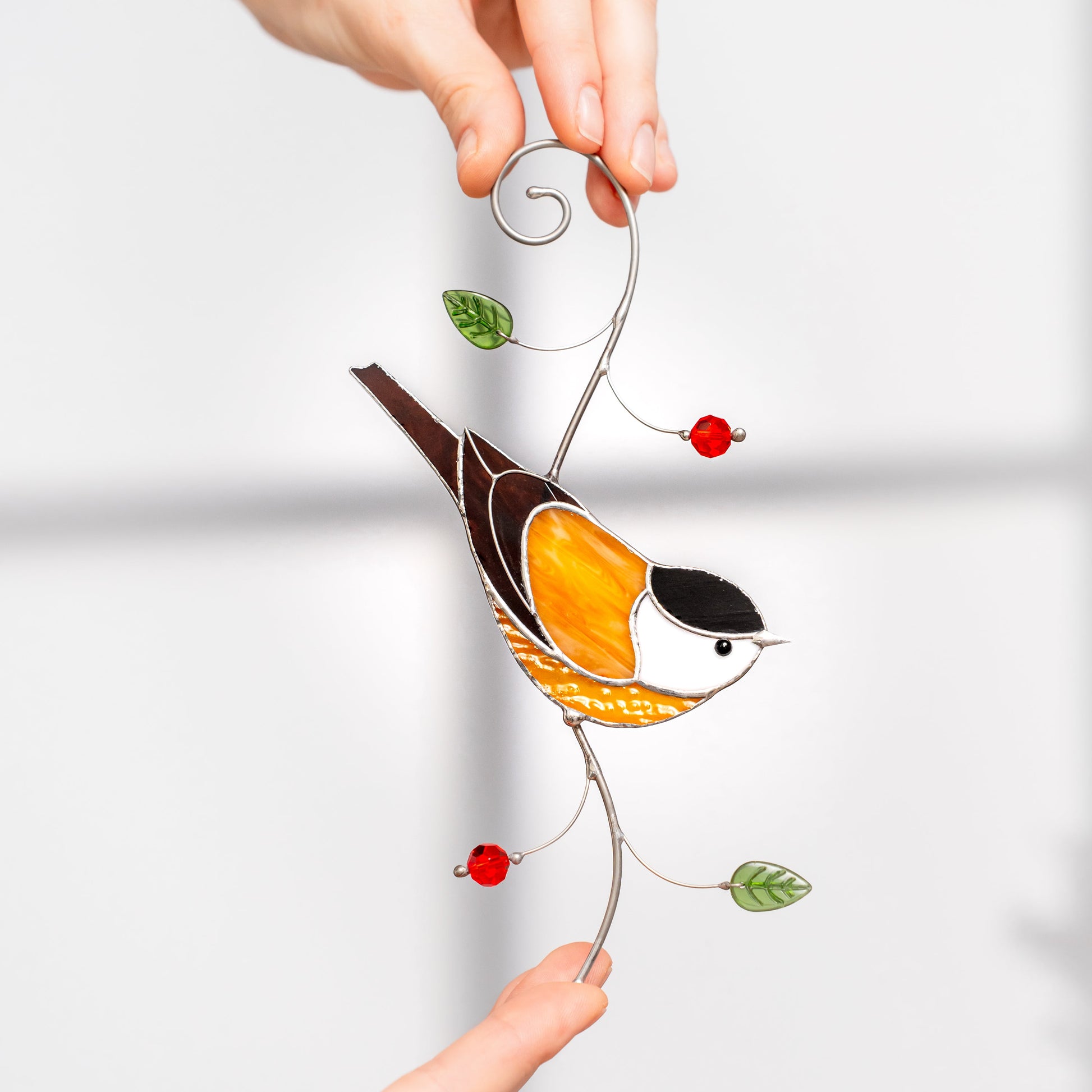 Chickadee Window Hanging – Stained Glass Bird Gift A Cheerful Symbol of Joy
