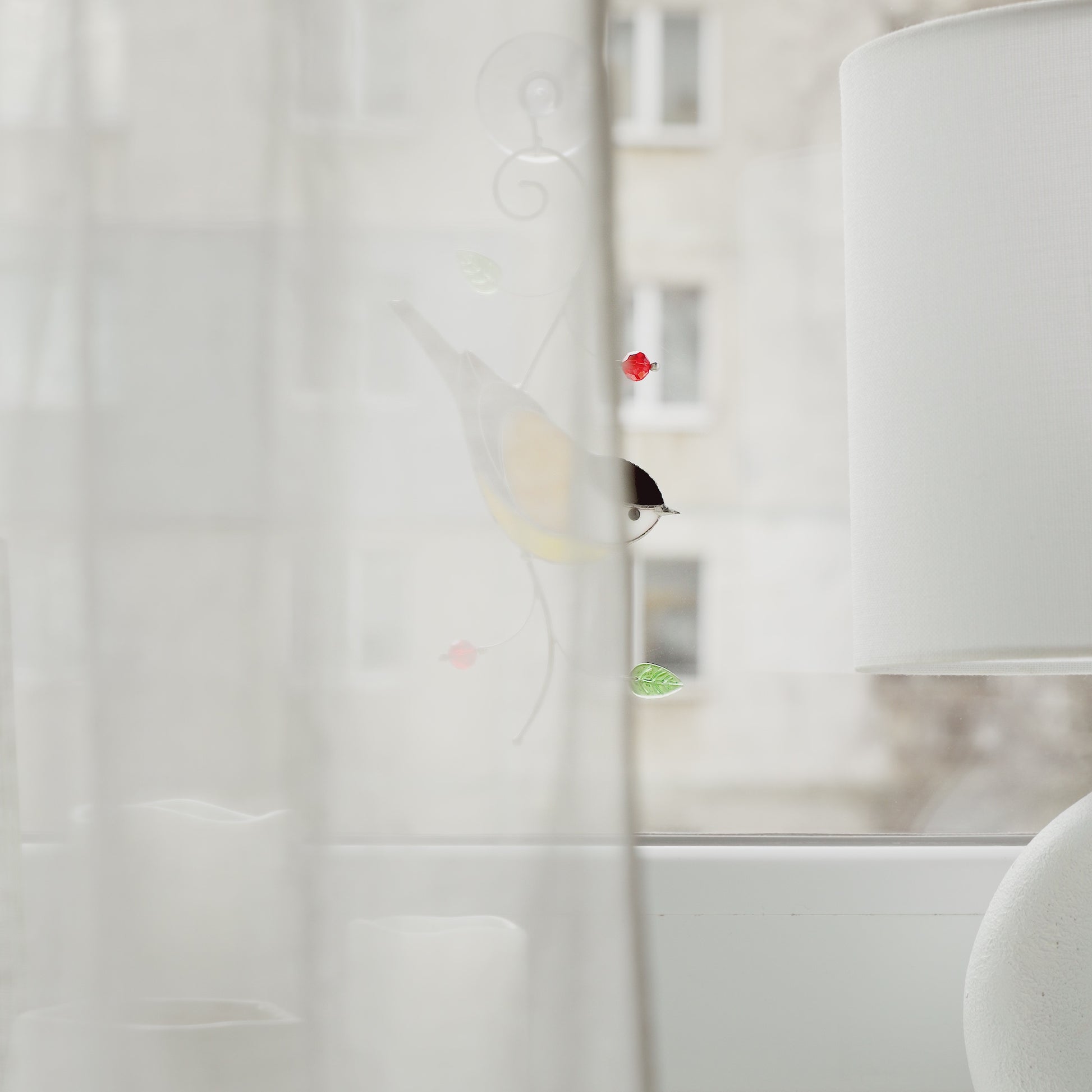 This sunny little chickadee perched on a swirling vine adds a bright and uplifting touch to your home. Handcrafted from stained glass, it brings the charm of nature indoors, reflecting light and smiles wherever it hangs.