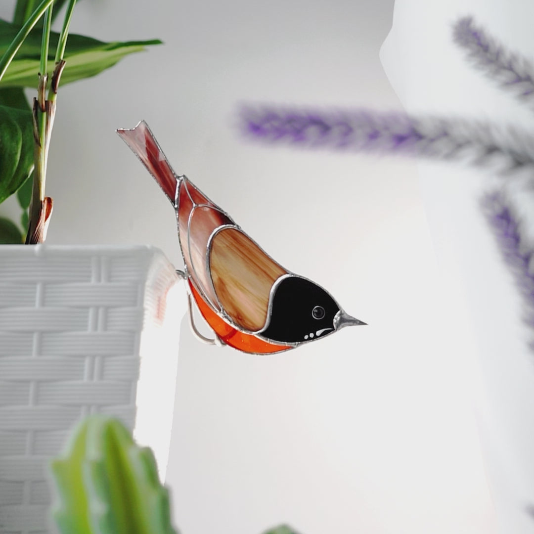 Handmade using high-quality stained glass, each piece is uniquely crafted to ensure exceptional detail and durability. The robin's bright hues and floral accents create a striking display that will draw attention and admiration. It’s not just a piece of art but also a thoughtful gift, perfect for occasions like Mother's Day or as a special present for her.