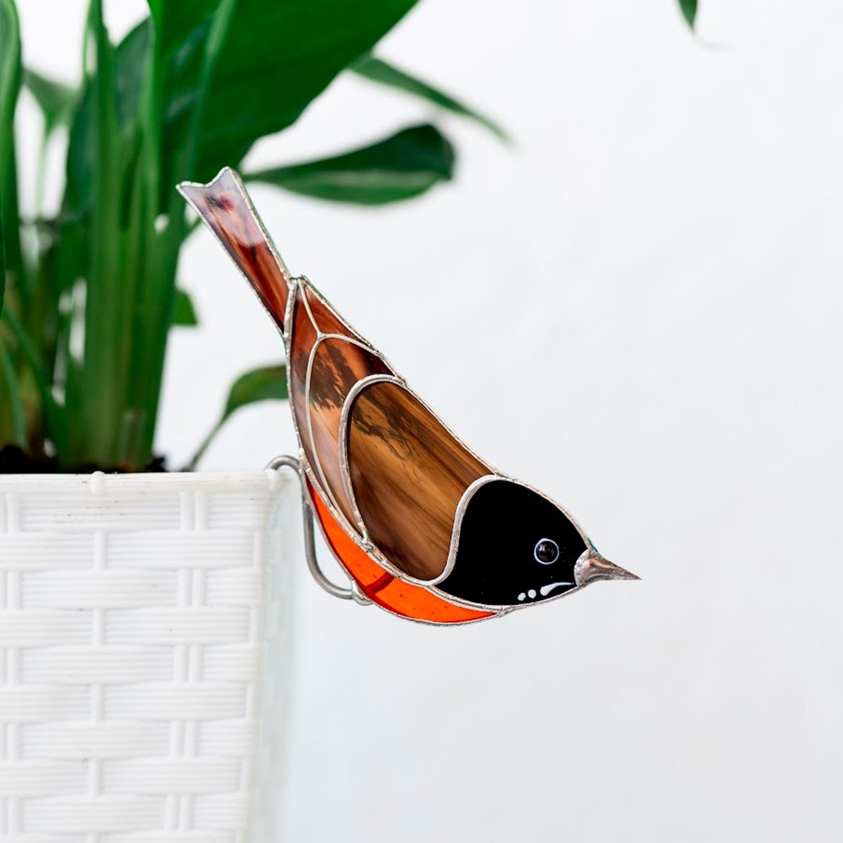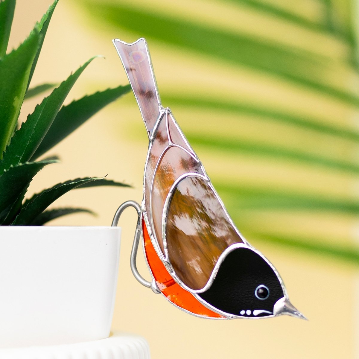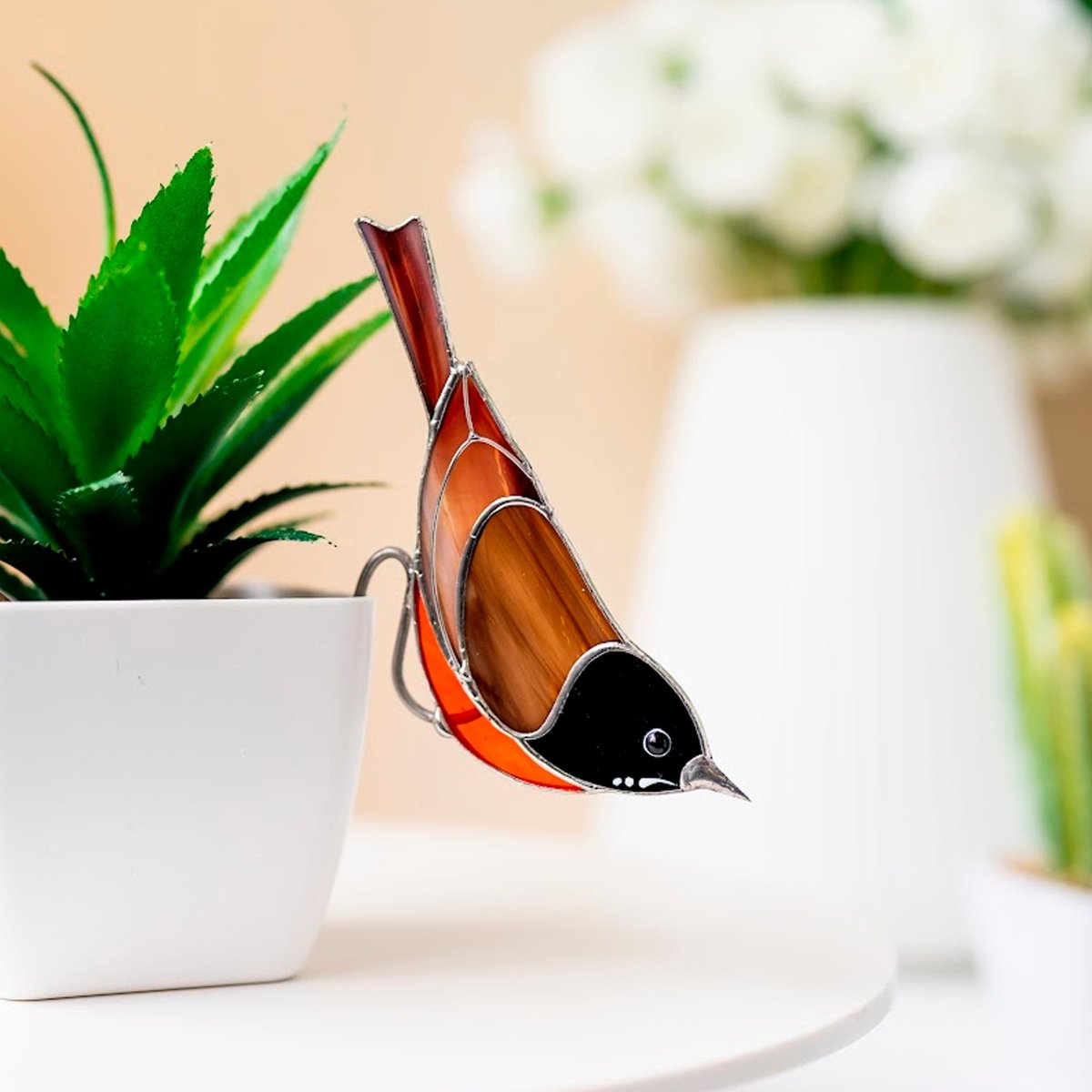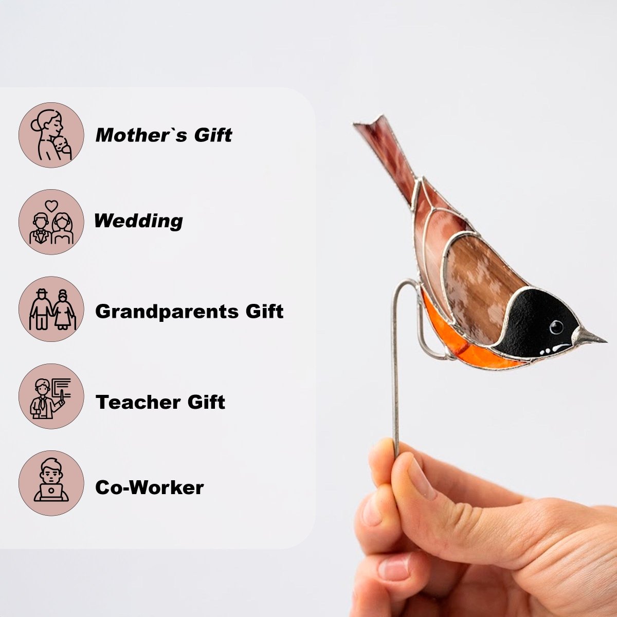 American Robin Stained Glass - Suncatcher Planter Decor 4.72x3 inch