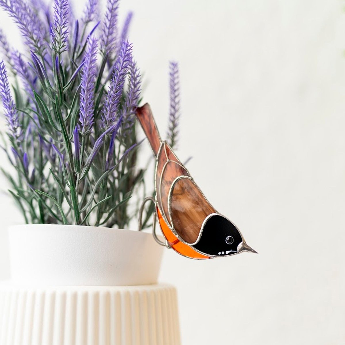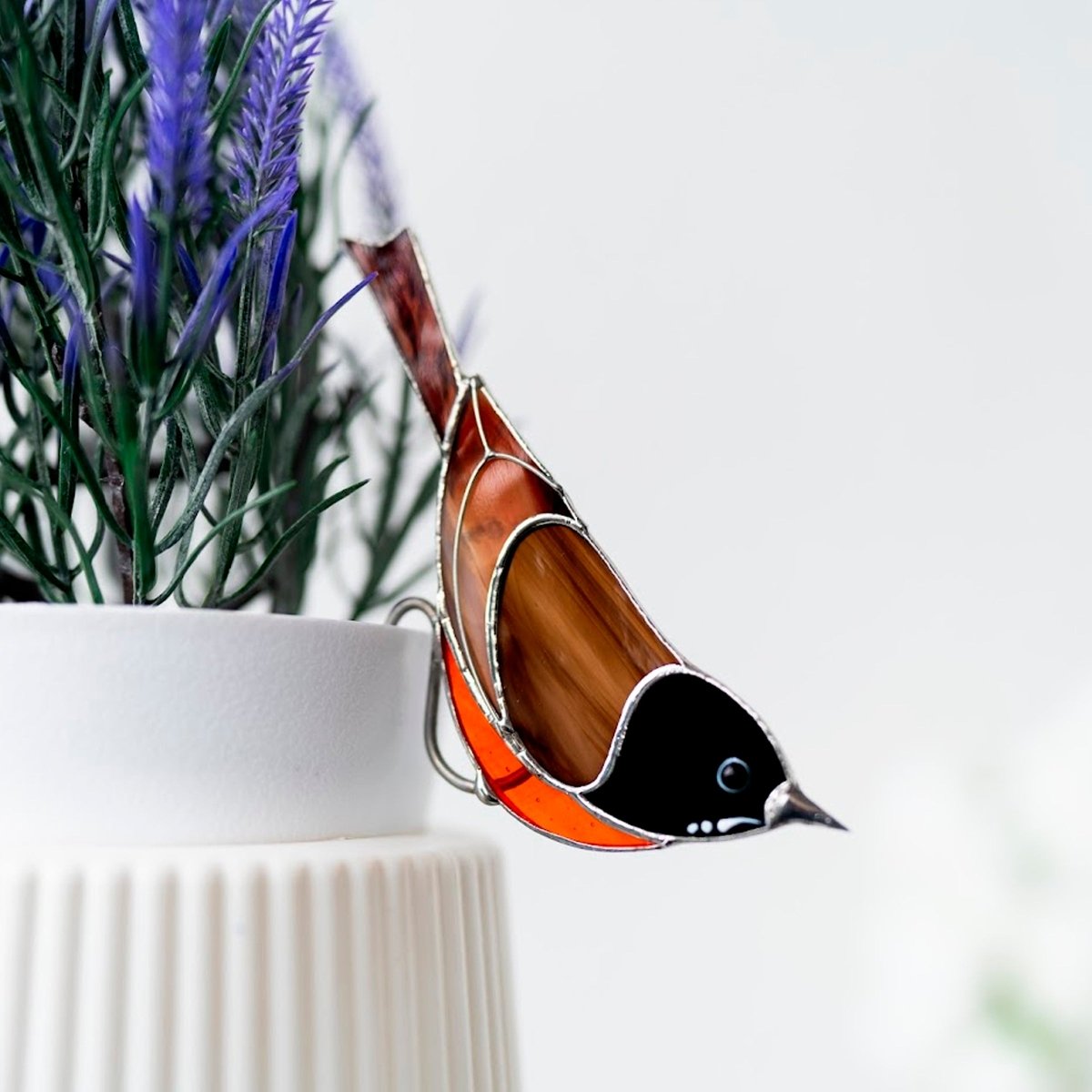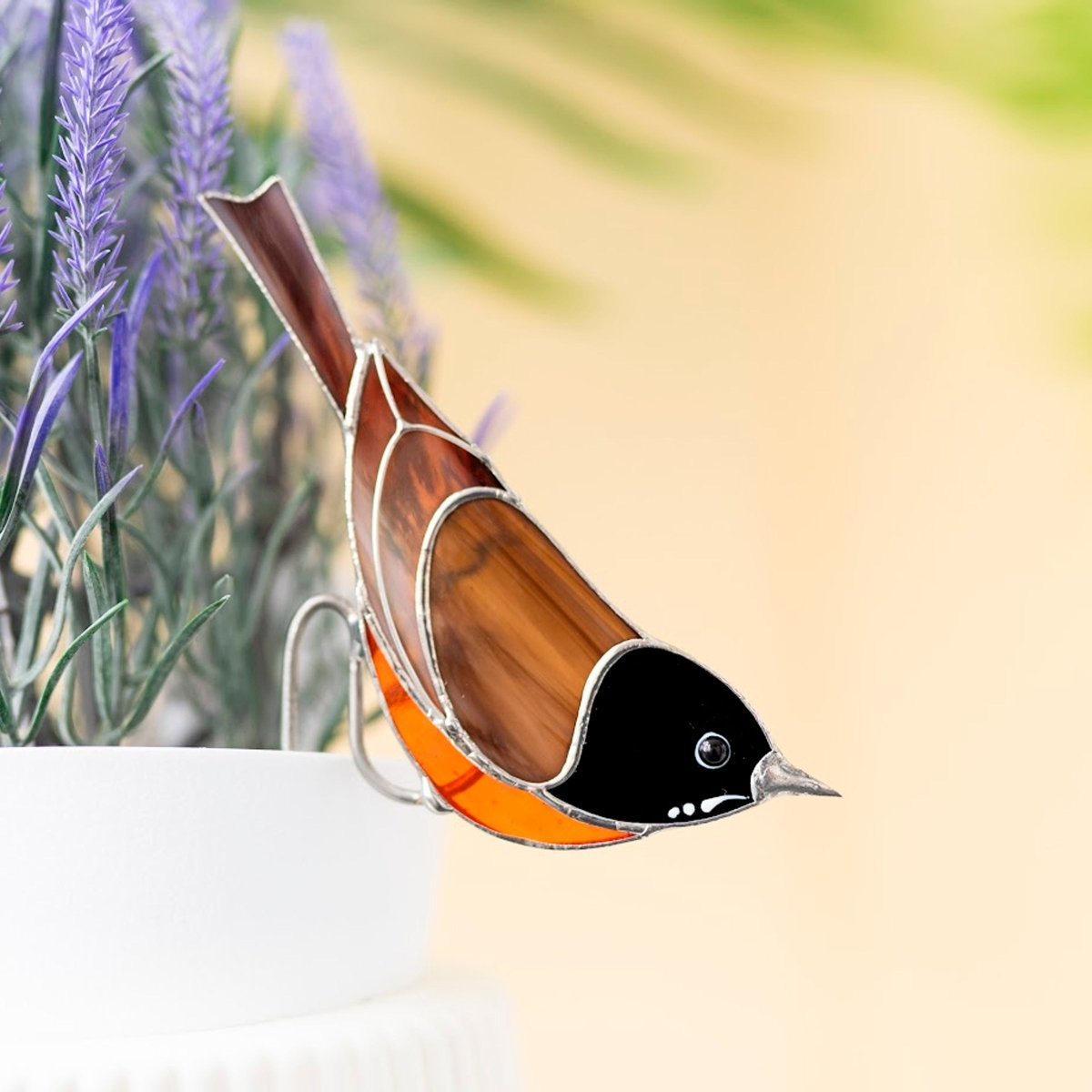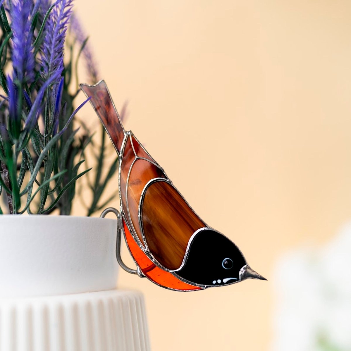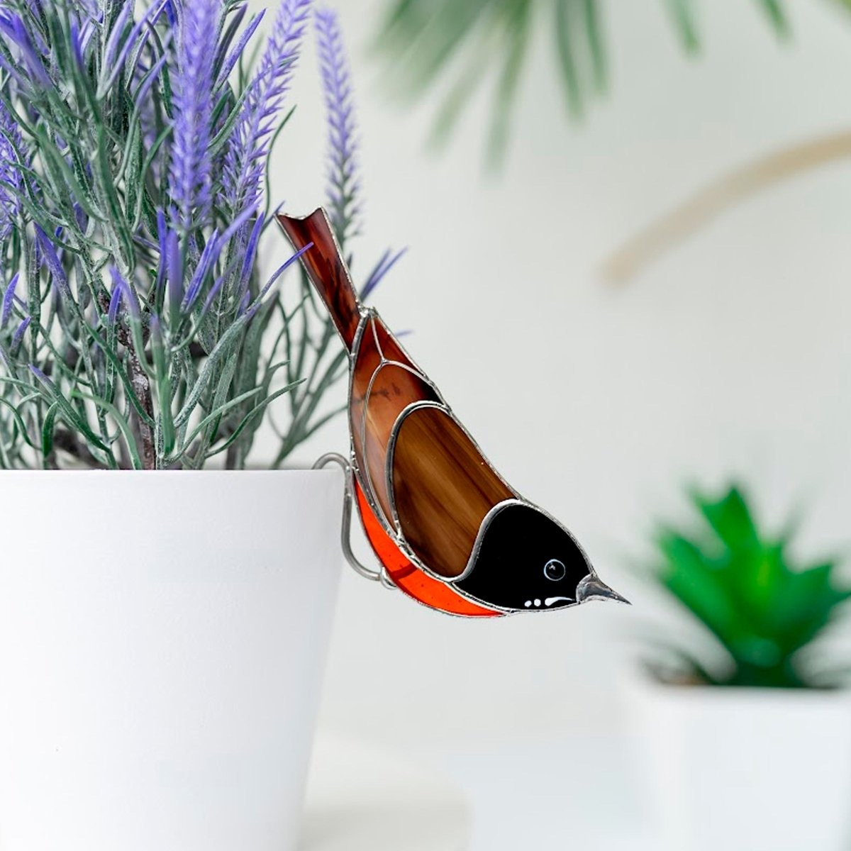 American Robin Stained Glass - Suncatcher Planter Decor 4.72x3 inch