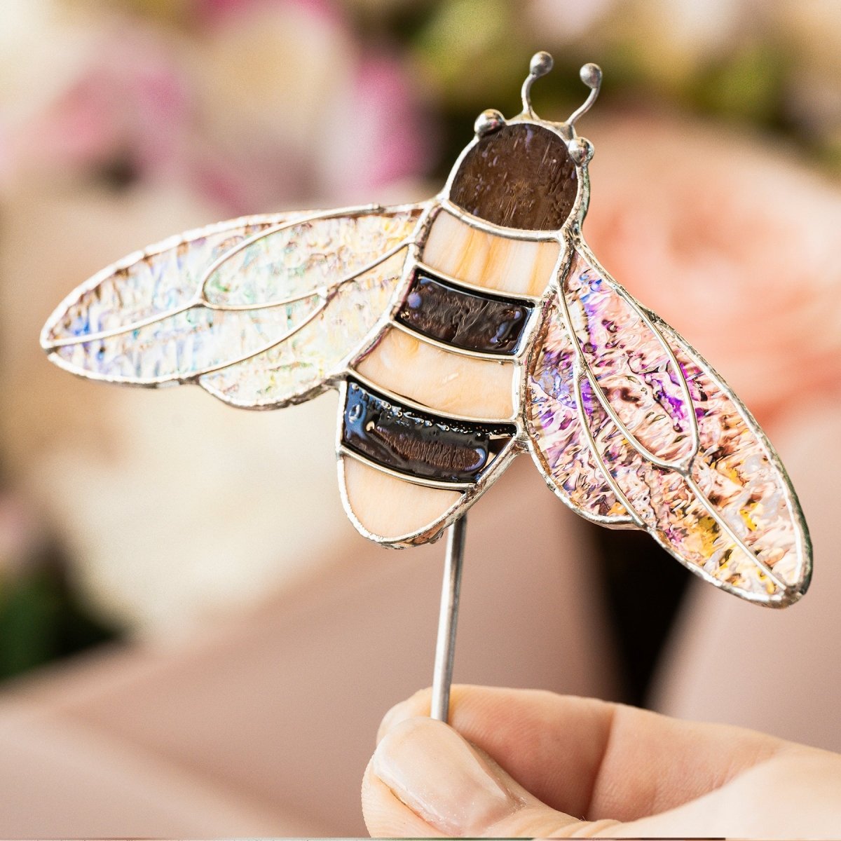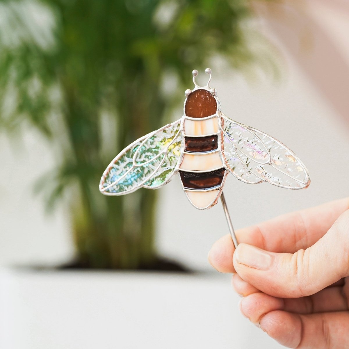 This Bee Garden Art piece is not only a thoughtful honeymoon gift or wedding present, but also a unique and heartfelt gift for any bee lover. The suncatcher's radiant colors and exquisite craftsmanship make it a standout piece, perfect for brightening up any room or outdoor space. Celebrate nature and artistry with this beautiful stained glass bee, a timeless treasure that will be cherished for years to come.