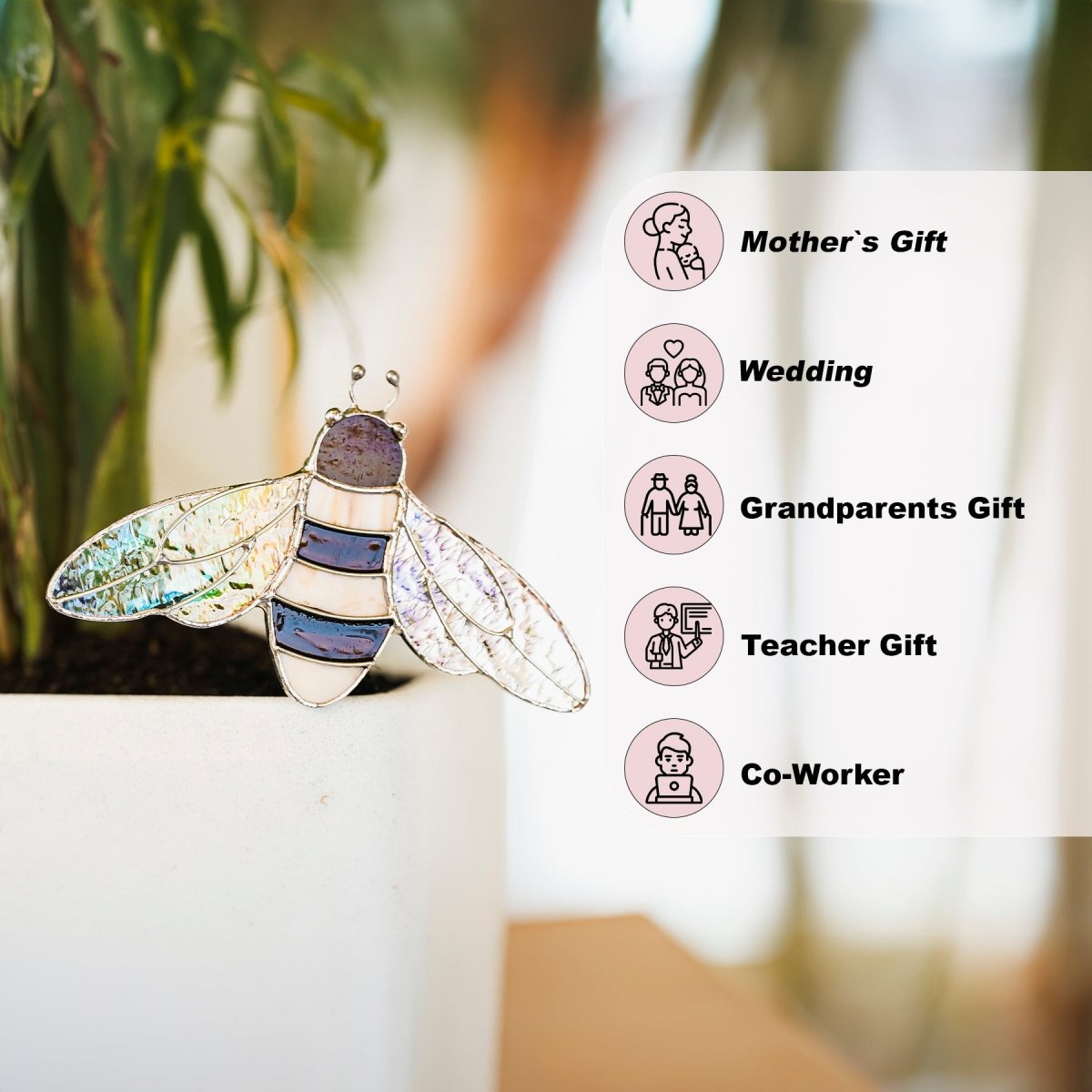 Presenting the charming Bee Suncatcher, an exquisite piece of Stained Glass Bee Artwork that adds a touch of whimsy and elegance to any setting. Handcrafted with precision, this delightful suncatcher is a perfect gift for women, whether for a sweetheart, a colleague, or anyone who appreciates the beauty of bees.