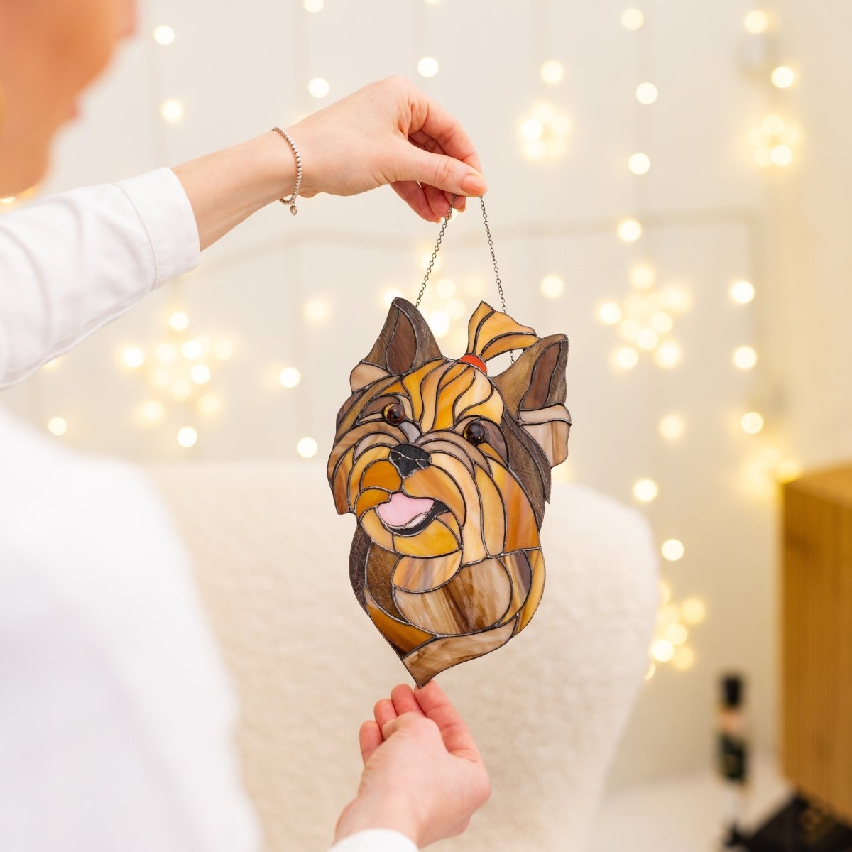 Dog portrait Stained Glass - Memorial Gift Suncatcher