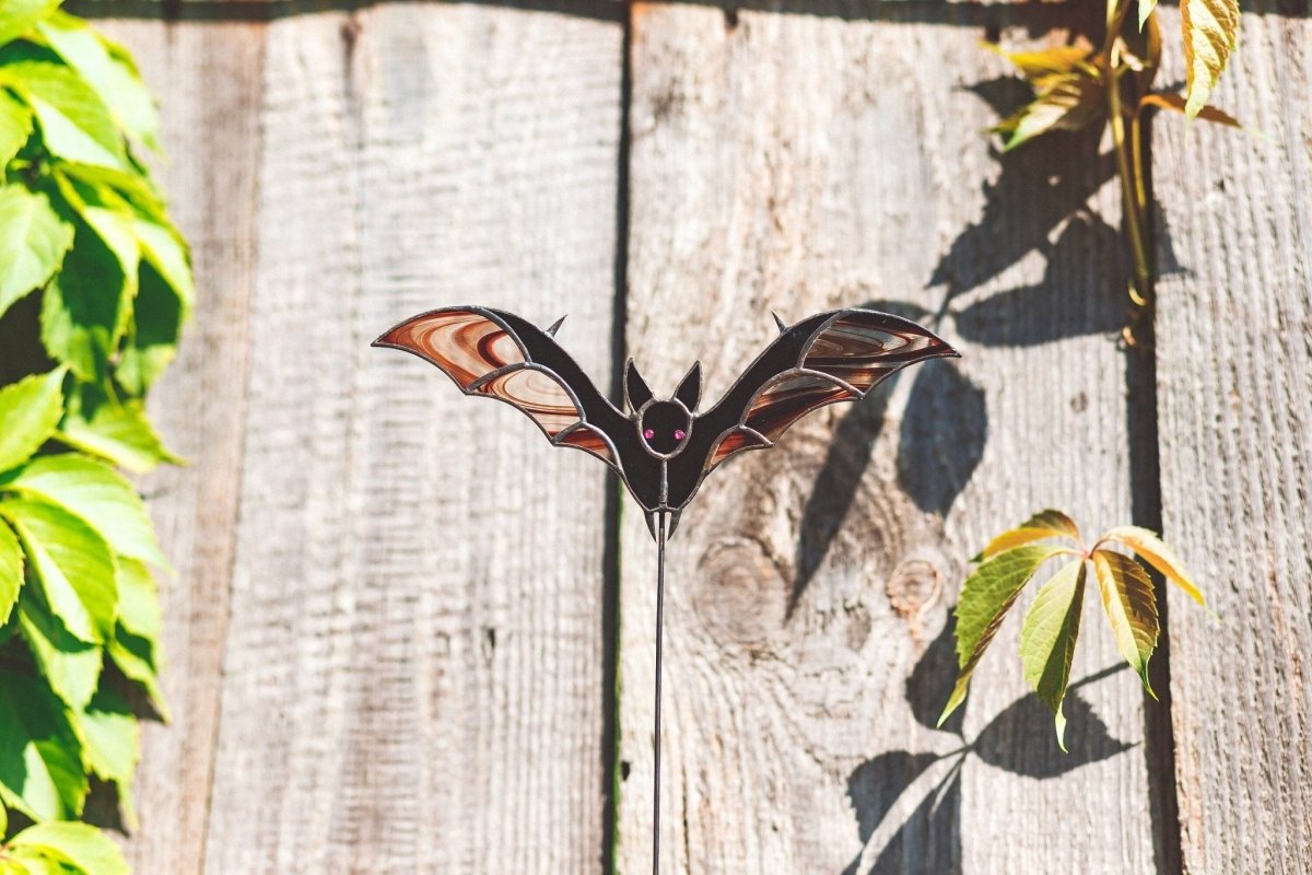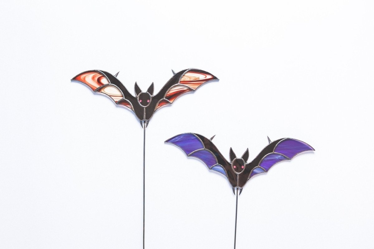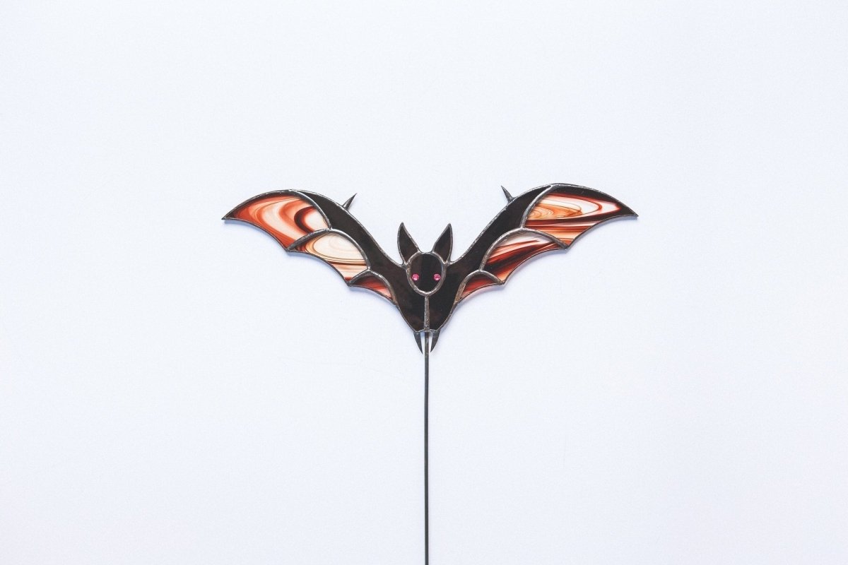 Are you ready to take your Halloween decorations to the next level? Feast your eyes on our bewitching stained glass bat suncatcher pot stake!