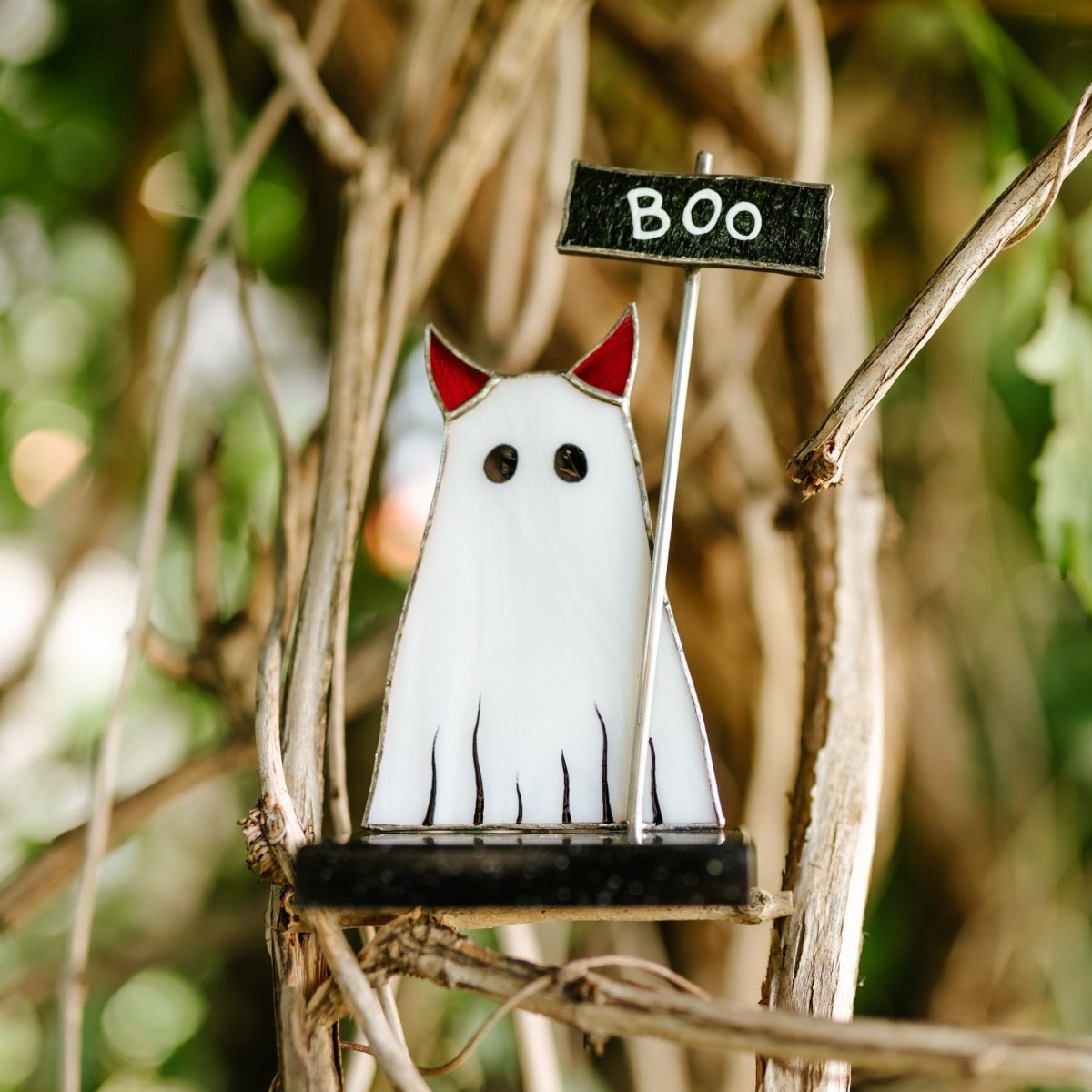 Ghost Cat Stained glass - Suncatcher Table Decor 5.7x3 inch