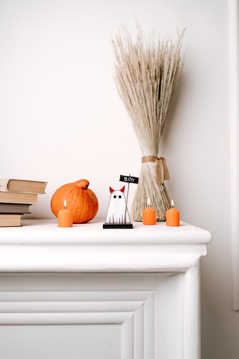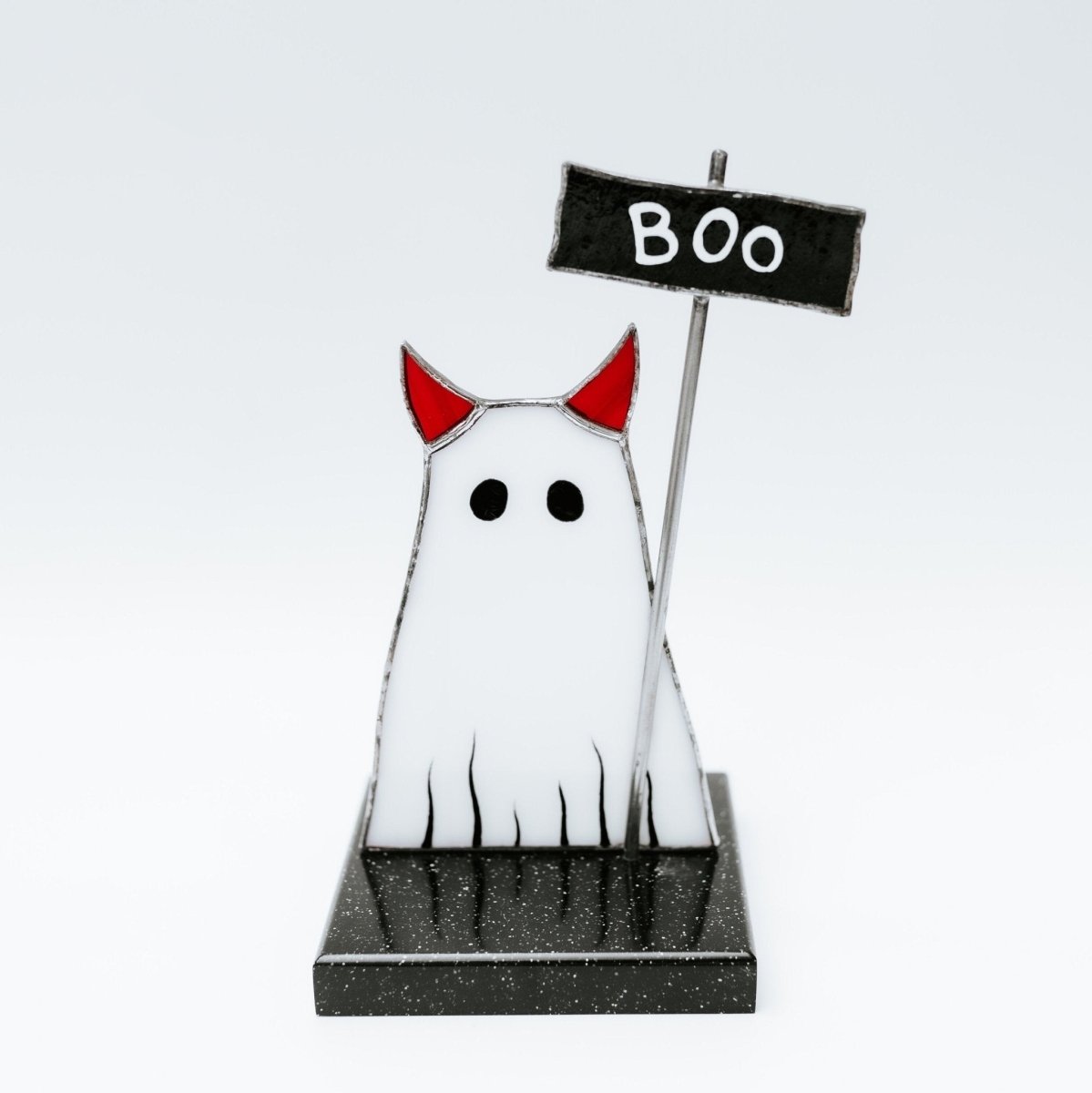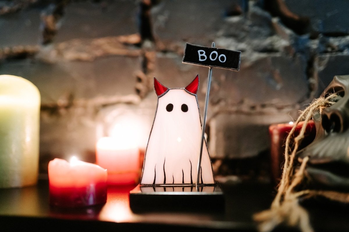 Introducing the perfect Halloween decor item - the Halloween Ghost Cat Stained Glass