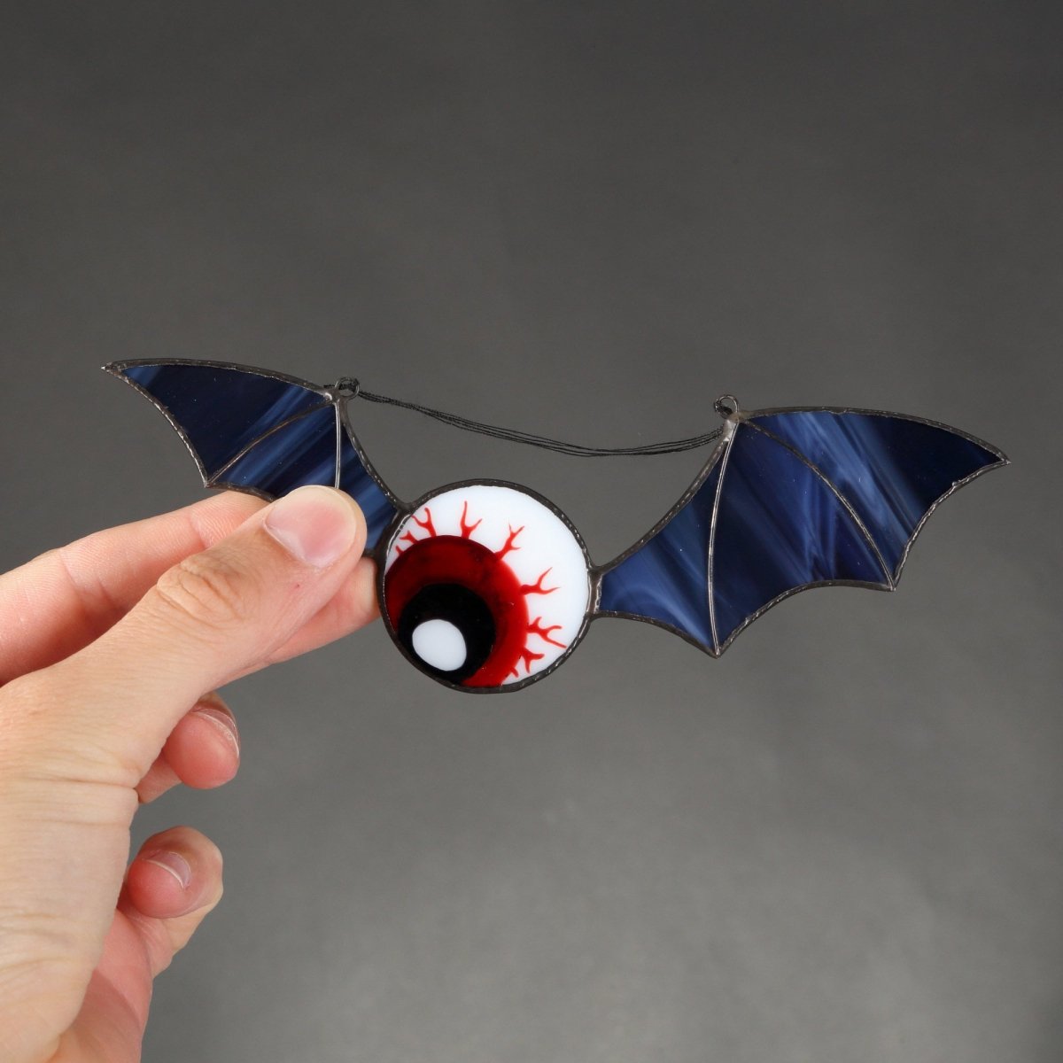 Looking for the perfect addition to your spooky Halloween decor? Check out our creepy stained glass suncatcher Eyes on bat wings. This unusual and gothic piece is sure to give your home a chilling touch.