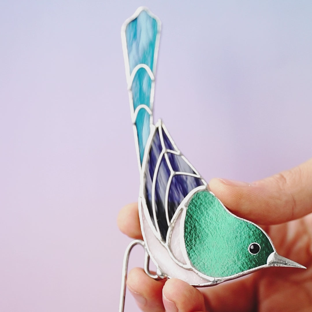 Each suncatcher is made from high-quality stained glass using traditional methods, ensuring both durability and a stunning, handcrafted finish. The intricate details of the magpie are carefully crafted to reflect the light, creating a mesmerizing effect that will brighten up any room or garden. It’s not only a decoration but also a wonderful gift for bird lovers, gardeners, or anyone who enjoys unique, handmade art.