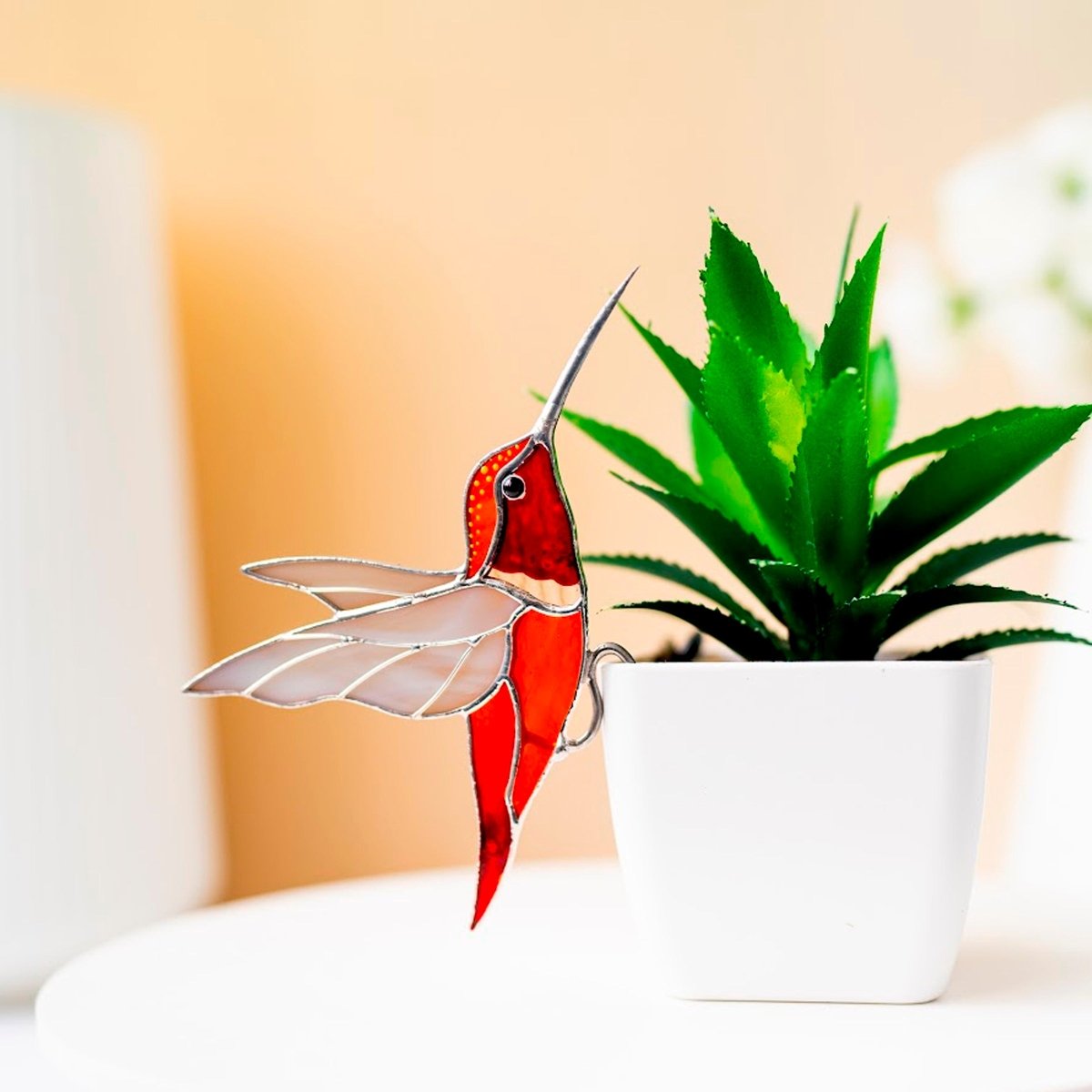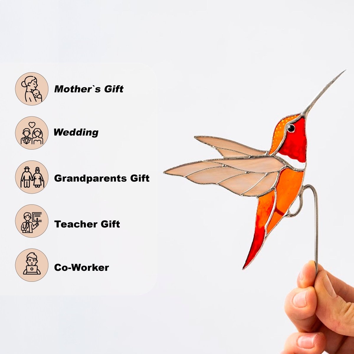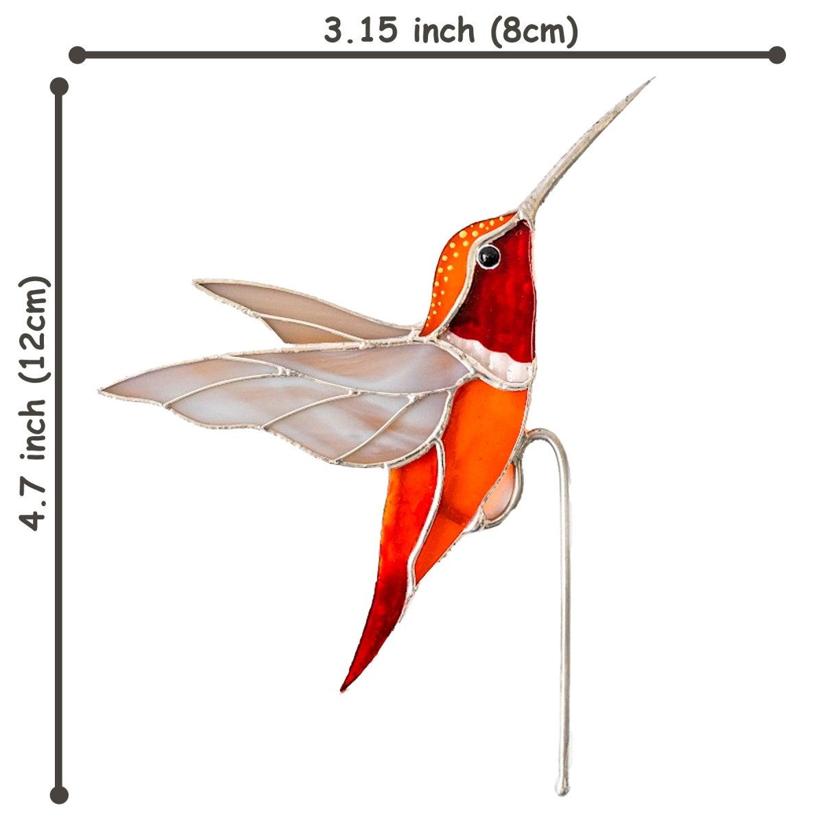 Orange Hummingbird Stained Glass - Suncatcher Planter Decor4.7x3.15 inch