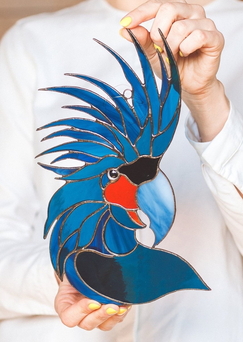 We've made this incredible collection of stained glass sun catchers especially for parrot lovers. Macaw parrots have the strongest beak in the world. The Parrot Jaco, who knew 400 words, got into the Guinness Book of Records. The most ancient remains of the feathered cockatoo parrot date back to between the early and middle Miocene, that is, 24-16 million years ago.