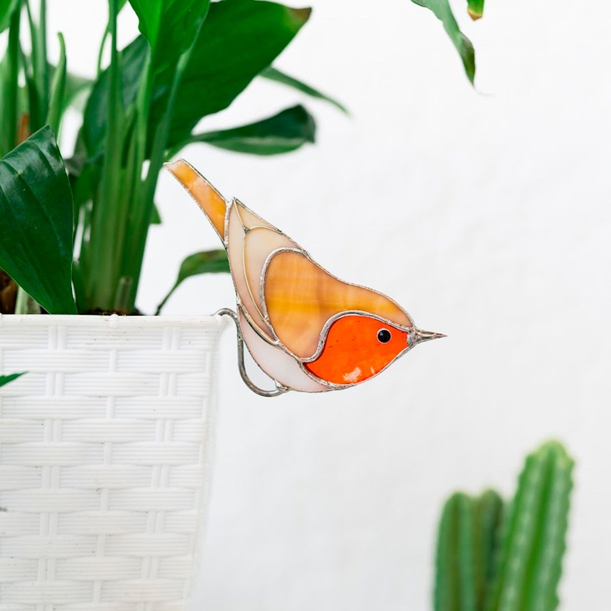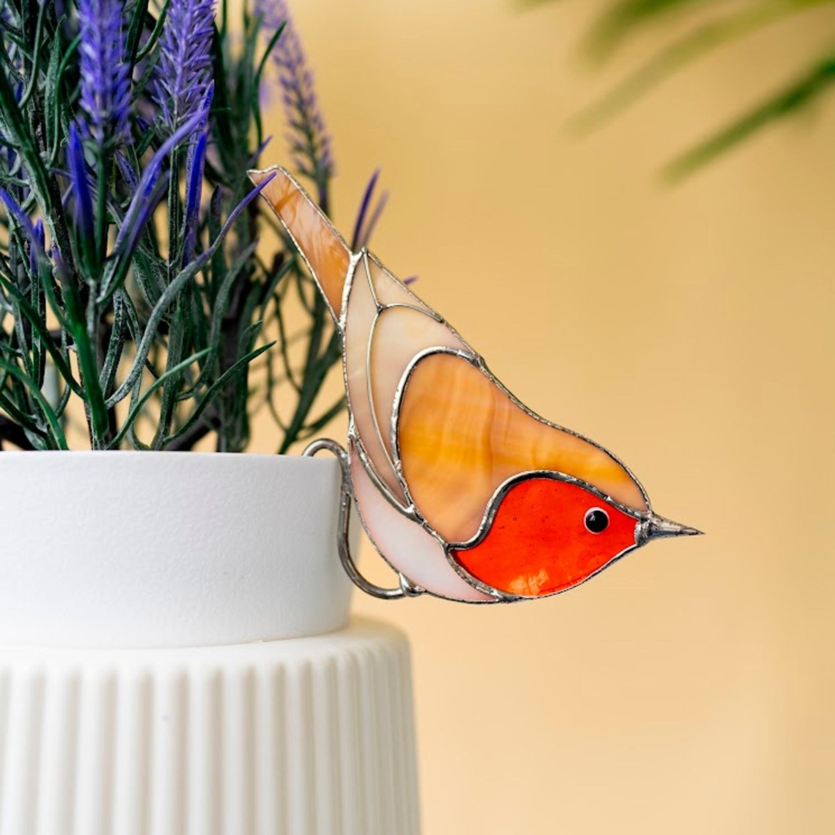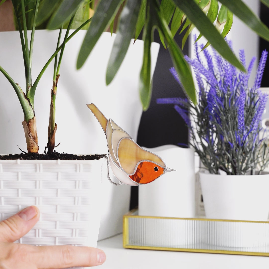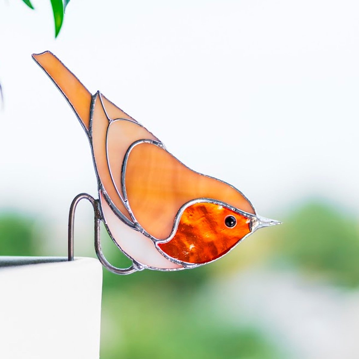 Robin Stained Glass - Suncatcher Plant Decor 4.7x3.15 inch