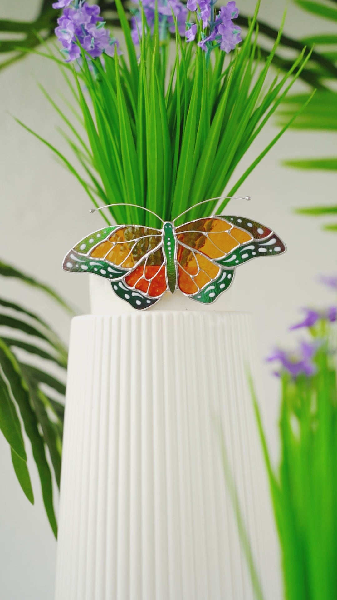 Monarch Butterfly Stained Glass - Suncatcher Planter Decor 4.7x3.3 inch